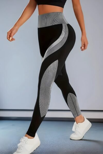 Add to WishlistSchon auf der WunschlisteAdd to WishlistNahtlose Damen Yoga-Hose – Hochtailliert mit geometrischem Muster und Seitenstreifen