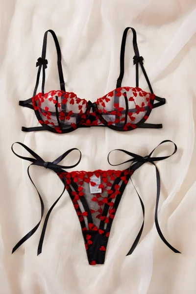 Add to WishlistSchon auf der WunschlisteAdd to WishlistSexy Dessous-Set mit Herzmuster – BH & Höschen mit feinem Trägerdesign für Damen