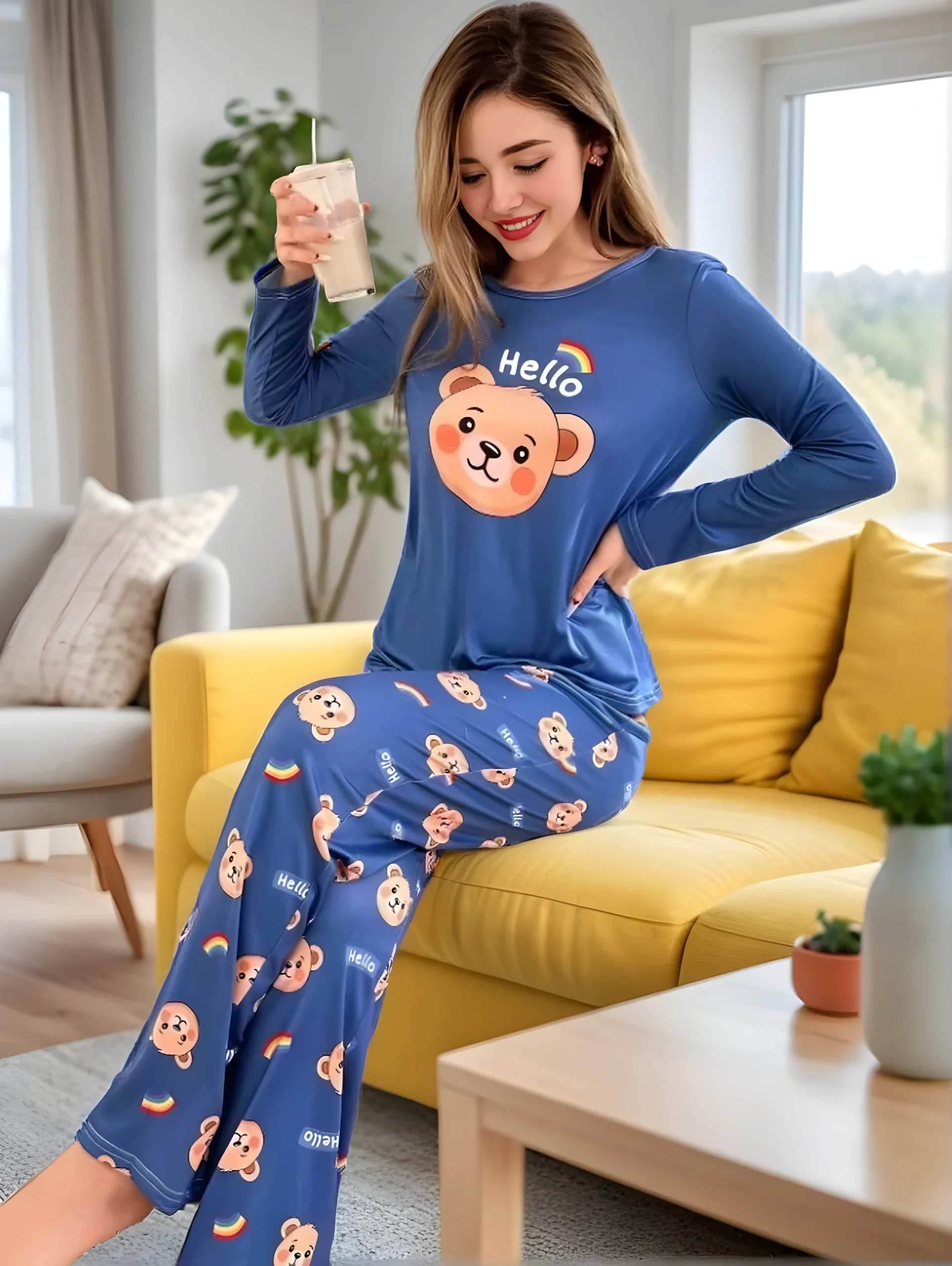 Dream Adore Damen Pyjama-Set aus Milchseide – Digitaldruck & Komfort