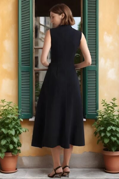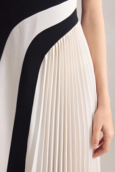 Stil trifft auf Kontrast: Dieses ärmellose Kleid in Schwarz und Weiß ist die perfekte Wahl für Frauen, die bei jedem Anlass glänzen möchten. Der kontrastreiche Look verleiht dem Design eine moderne Raffinesse, während der feminine Schnitt Ihre Silhouette stilvoll betont.