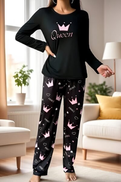 Add to WishlistSchon auf der WunschlisteAdd to Wishlistamen-Pyjama-Set mit stilvollem Königskronen-Druck – Langarm & Langhose | Elegante Loungewear für gemütliche Nächte