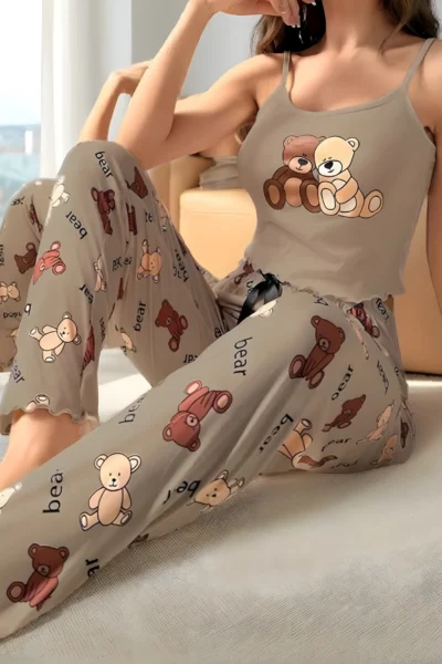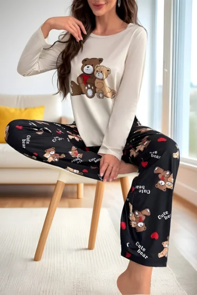 Add to WishlistSchon auf der WunschlisteAdd to WishlistDamen Pyjama-Set mit Bären- & Buchstaben-Grafik – Süß & Bequem